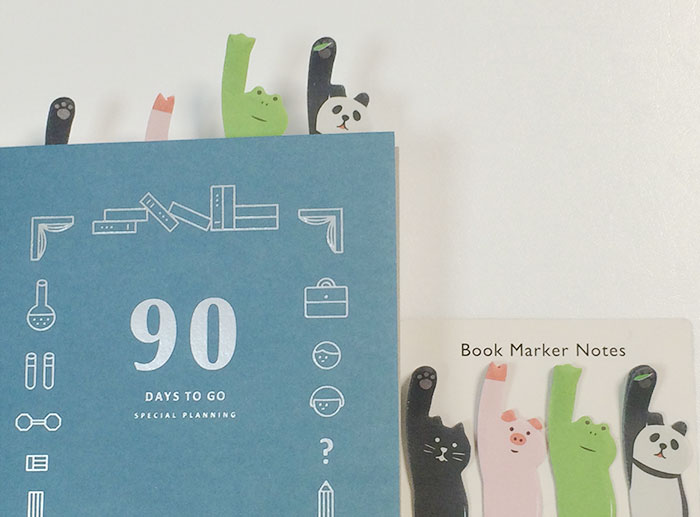 やまぐちは、動物たちの反対側に普通の付箋を貼っていてこれ1冊で付箋の管理をおこなっております。 ちなみに、動物たちそれぞれ意味を持たせていて