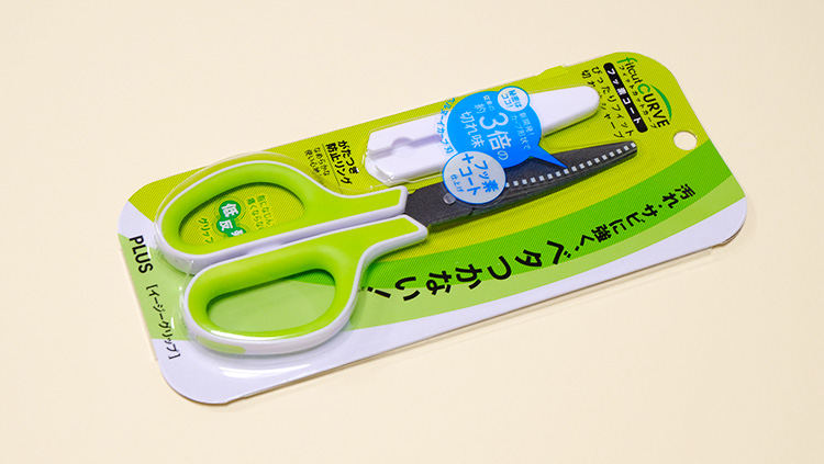 持ちやすく、切れ味がシャープなPLUSのハサミ「フィットカットカーブ」は、紙・テープ・布・草花など、いろんな素材がサクサク切れるハサミです。