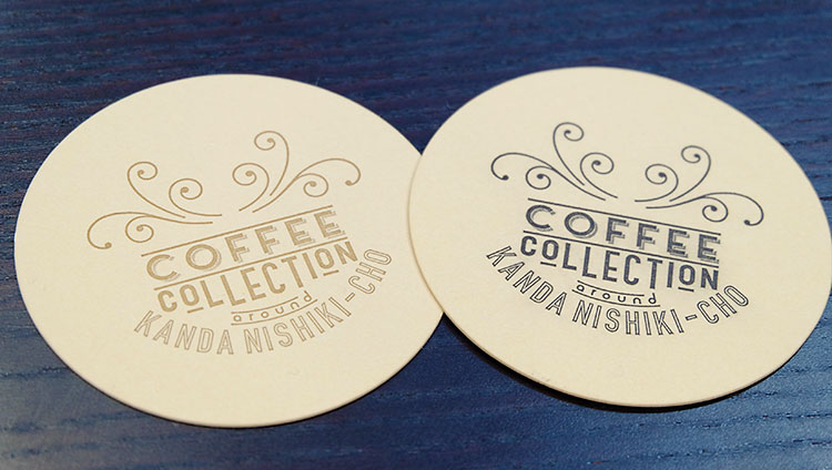 こちらは“コーヒーコレクション(COFFEE COLLECTION)”で作ったイベント用のコースター。「活版印刷は紙の厚さや形に関係なく、なんでも印刷できるのが特徴なんですよ」と、ささもりさんの話に思わずフムフム。