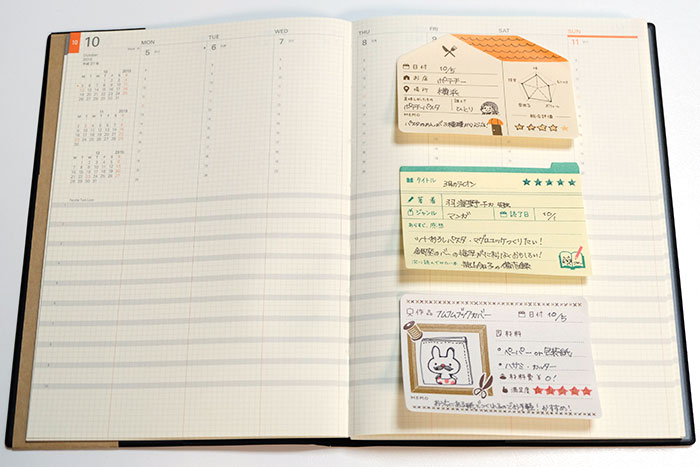 メモとして書いたり、手帳にとりあえず貼ってみたり。1年間手帳と一緒に使って、こんなまとめ方もできそう。